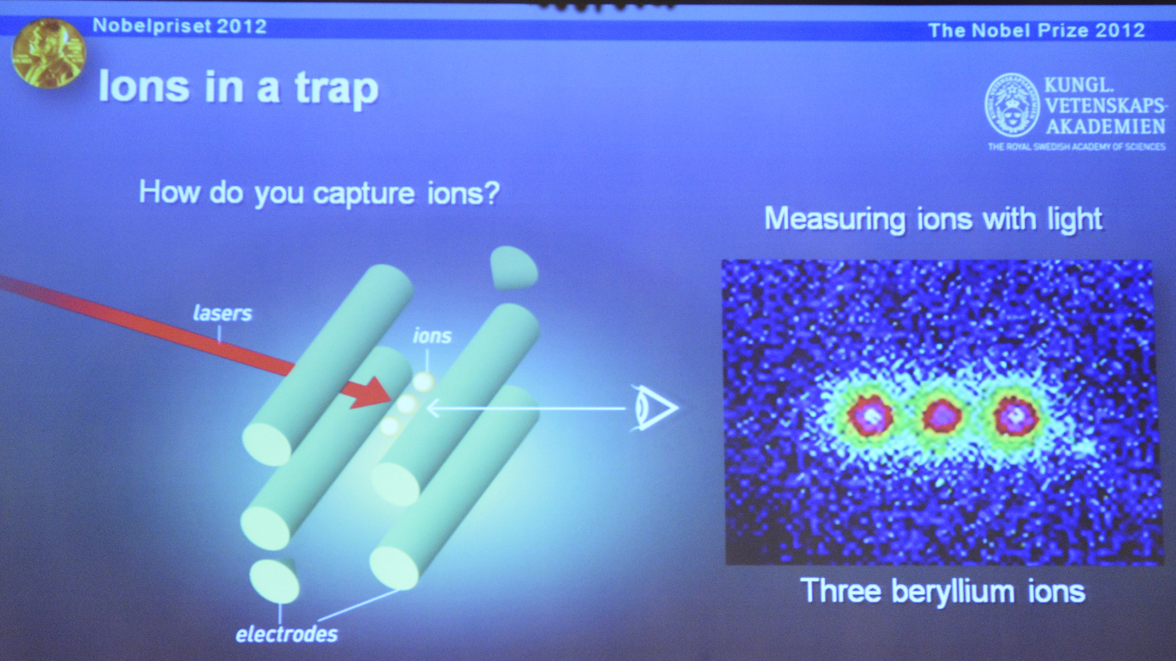 68-летний профессор из Франции Серж Арош работает в Коллеж Де Франс в Париже. Его ровесник, американский профессор Дэвид Уэйндленд ведёт исследования в Национальном институте стандартов и технологий при Колорадском Университете. Шведская королевская академия наук заявила, что двое учёных открыли новую эру в квантовой физике, продемонстрировав возможность непосредственного наблюдения отдельных квантовых частиц без их разрушения.