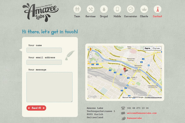 За иллюстрациями к сказанному загляните в галерею Patterntap, содержащую большое количество примеров визуального оформления контактных форм и контактных страниц.