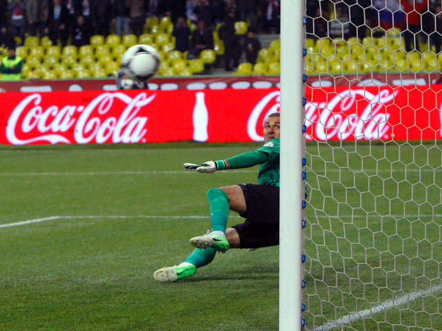 В составе россиян в первом тайме выделялись Комбаров и Кокорин, а Кержаков запомнился точным выстрелом в крестовину и замысловатым ударом пяткой.