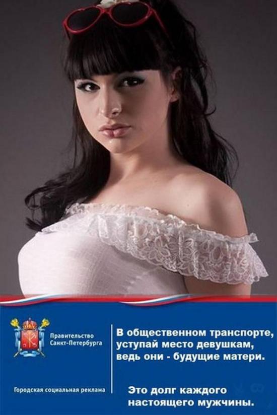 Призывая уступать места "будущим матерям", питерские власти проиллюстрировали своё обращение фотографией известного порноактёра-шимейл Бейли Джея (Bailey Jay).