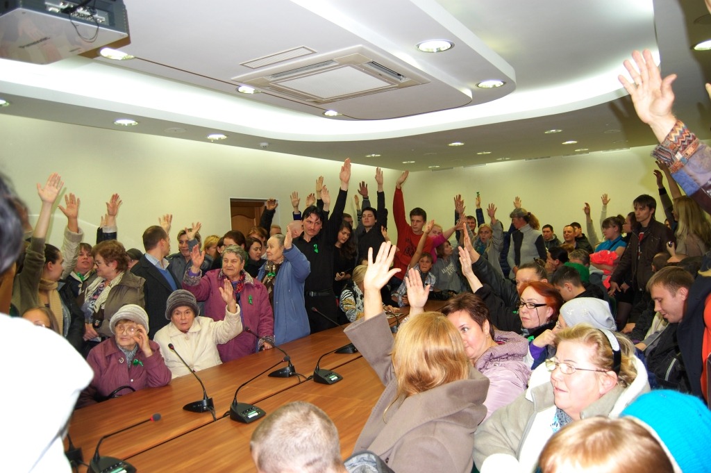 Тогда «мемориалец» Павел Андреев предложил: пока не будут обеспечены нормальные условия, по всем пунктам голосовать «против». Активные общественники его поддержали, упирая не только на то, что многие не смогли попасть в зал, но и также на тот факт, что люди об этих слушаниях не были должным образом оповещены. Но вице-мэр настоял на голосовании, и пассивное большинство подняло руки «за».