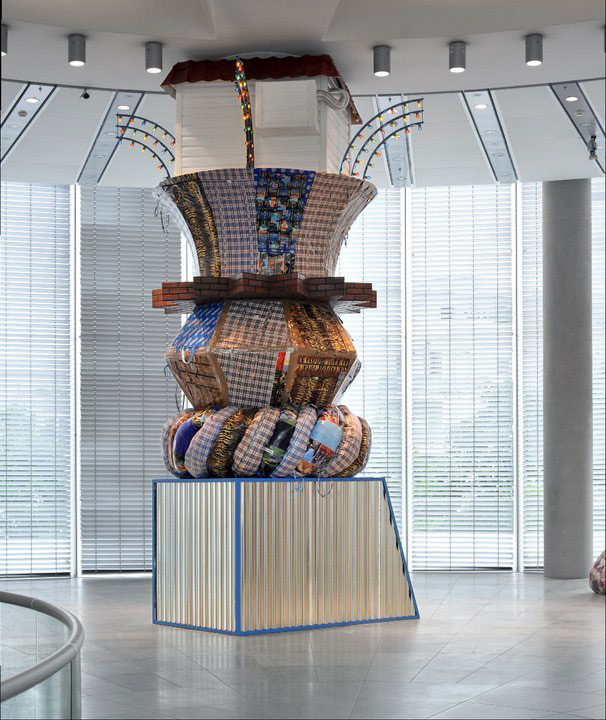Ирина Корина. Колонна.2008. Клеенка, ДСП, Металл, Смешанная техника. Из коллекции Государственного Центра современного искусства.