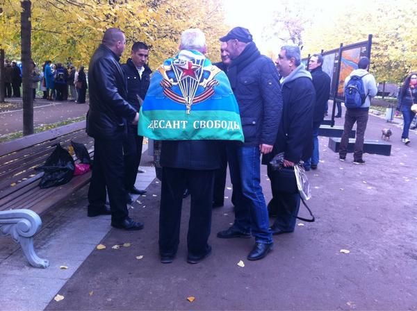 Поймали парня-нашиста. Его оппознали по фильму "Срок". Он ходит по очередям и задает провокационные вопросы. У Каспарова выяснял, не гражданин ли он США. Активисты пытаются вывести парня с бульвара.