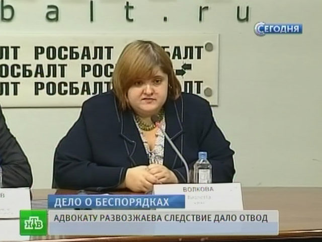 Адвокат Виолетта Волкова не сможет защищать интересы помощника депутата Госдумы Ильи Пономарева Леонида Развозжаева, который обвиняется в приготовлении к организации массовых беспорядков. Следствие вынесло постановление об ее отводе, передает ИТАР-ТАСС со ссылкой на официального представителя Следственного комитета России Владимира Маркина. Ранее сообщалось о том, что Волкову "Меня пропустили на территорию изолятора, мне показали камеры, где находятся Леонид Развозжаев и Константин Лебедев. Мы провели развернутую беседу с и.о. начальника изолятора, но мы не смогли встретиться ни с одним, ни с другим", - цитирует депутата "Интерфакс".