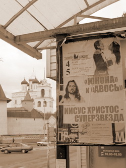 5 мая 2009 годавПсковском театре драмы Санкт-Петербургский государственный театр «Рок-опера» был намерен показать рок-оперу «Иисус Христос – суперзвезда». Ничего революционного в этом не было. Осенью 2004 года тот же театр ту же рок-оперу в Пскове уже представлял. Мир не перевернулся.