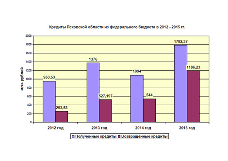 У федерального бюджета Псковская область планирует заимствовать в 2013 году – 1 млрд. 376 млн. руб., в 2014 году – 1 млрд. 94 млн. руб., в 2015 году – 1 млрд. 782 млн. 370 тыс. руб.