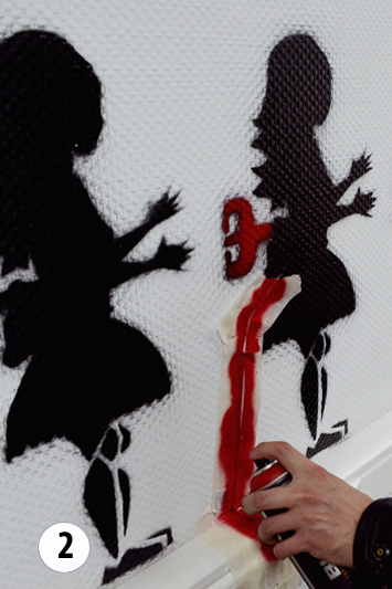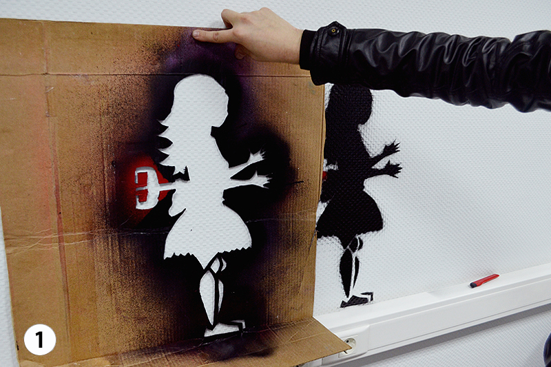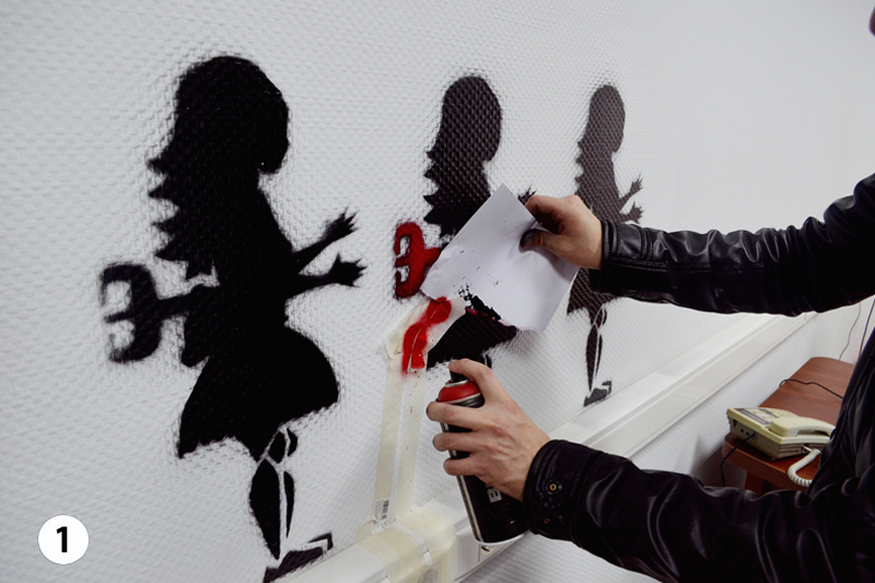 "Трафарет должен твердо примыкать к стене, для этого его можно прикрепить скотчем или попросить друзей крепко придерживать со всех сторон".