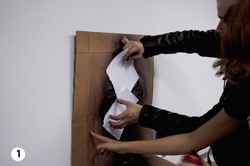 "Закрашивать граффити надо так, чтобы краска не попала за пределы картона (лучше оставить немного бумаги по бокам от рисунка) — маленькими короткими брызгами. Держать баллончик следует на расстоянии 10-12 см.