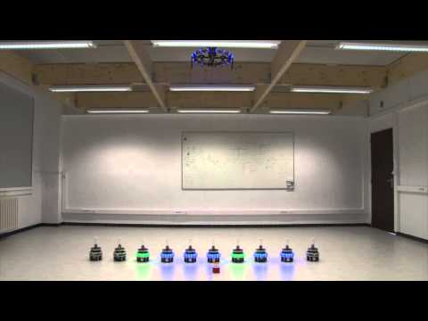 На конференции Intellegent Robots and Systems были представлены небольшие роботы, главная особенность которых - возможность работать сообща, реагируя на действия друг друга. Они могут устраивать шоу в небе, перемещаться синхронно друг с другом, слушаться "старшего" робота, который отдает им приказы и т.д.