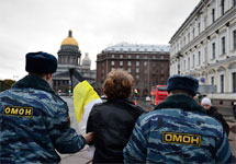Затем участники "Русского марша" прошли по Невскому с криками "Русские, вперед!" И "Один за всех и все за одного!". Как передает Фонтанка.Ру, около 30 человек смогли дойти до Исаакиевской площади, где их встретил ОМОН. Таким образом, общее число задержанных приближается к 70.