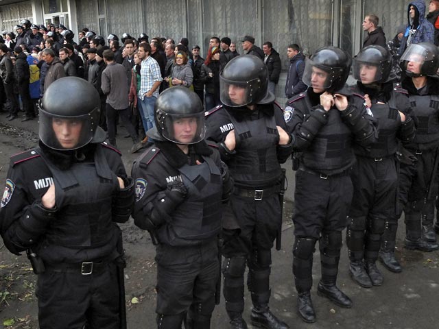 К месту акции были стянуты усиленные спецподразделения милиции "Беркут". Сотрудники правоохранительных органов через громкоговоритель призывали протестующих разойтись, поскольку Окружной административный суд Киева запретил в этот день любые массовые акции возле Центризбиркома.
