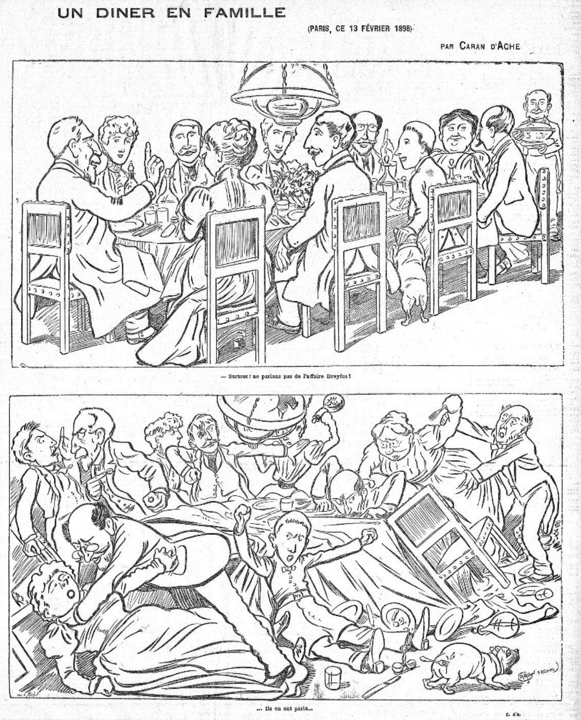 Случился конфуз. Но очень сомнительно, что мыльная опера, в которую превратилось «смоленское дело», на этом закончится. Та часть зрителей, которая от нее не в восторге, постит в социальных сетях картинки, подобные приведенной выше. С другой стороны, приверженцы теории заговора кричат все громче, а общая обстановка напоминает французскую времен дела Дрейфуса. Тогда говорить о нем, если верить известной карикатуре Каран д’Аша, не рекомендовалось даже за семейным обедом – чтобы дело не кончилось мордобоем.