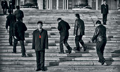 На площади Тяньаньмэнь — усиленные наряды полиции и десятки людей в штатском. «Где можно снимать?» — спрашивает репортер немецкого телевидения у офицера полиции. — «Нигде». — «У нас есть все бумаги», — приходит на подмогу журналистам сопровождающий их сотрудник министерства пропаганды. — «Нигде». Откуда-то из-под земли появляется человек в костюме и вносит в регламент смягчающие коррективы: «Общие планы снимать можно. Но — издалека». Охраняют съезд 100 тыс. полицейских и 1,5 млн дружинников, свезенных со всего Китая.