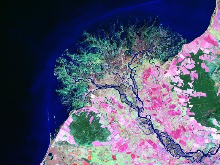 Напомним, что дельты - это плоские низменные равнины побережья моря или озера, часто имеющие форму, близкую к треугольной, постепенно нарастающие в сторону стока, в ширину и высоту, образовывающие широкий конус с вершиной, обращенной к реке.