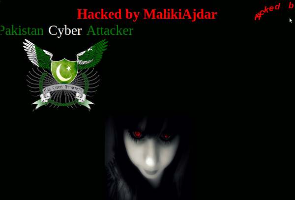 На главной странице ресурса размещена сопровождающаяся музыкальной композицией надпись "Hacked by Maliki Ajdar" и "Pakistan Cyber Attacker".
