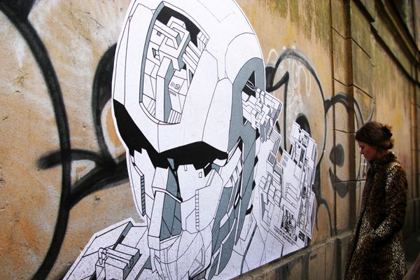 Художник Incubus project клеит на улицах Петербурга футуристические коллажи с роботами-киборгами, заводскими машинами и «чертежами» космических станций. >>>