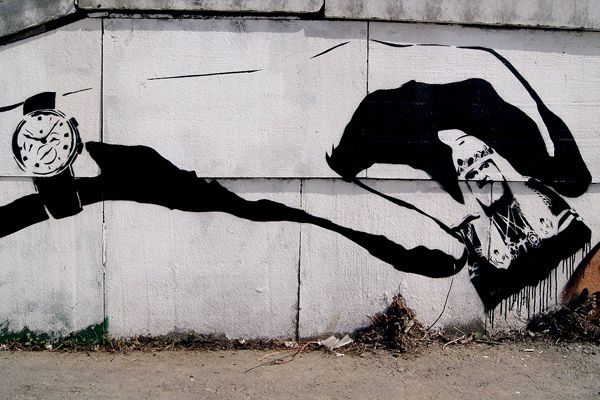 Художник Женя Корелин создает на стенах домов Петербурга мрачные работы на тему серой обыденности, всеобщего одиночества и недосыпания. >>>