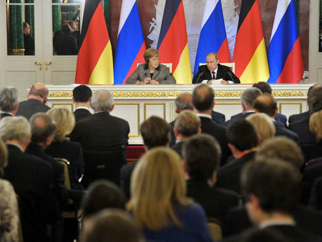 Владимир Путин, чтобы подчеркнуть "особый, доверительный, стратегический характер отношений между Германией и Россией" предложил в ходе переговоров в Кремле, чтобы на чемпионате мира по футболу в 2018 году "немецкая сборная выступила за Россию, а российская - за Германию".