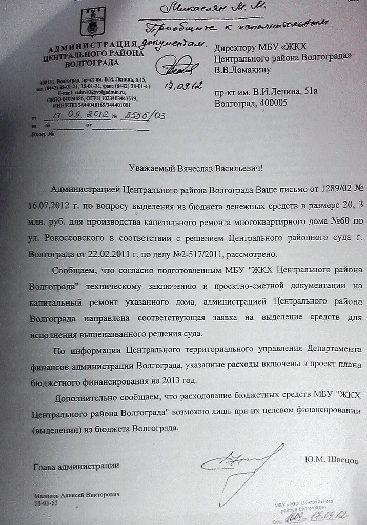 Удобные машины, современные кабинеты, премии за сомнительные достижения — вот цена жизни тех простых волгоградцев, которые существуют на грани жизни и смерти на девяти этажах ветхого дома № 60 по ул. Рокоссовского в городе Волгограде… А сколько еще таких домов в городе на Волге?..