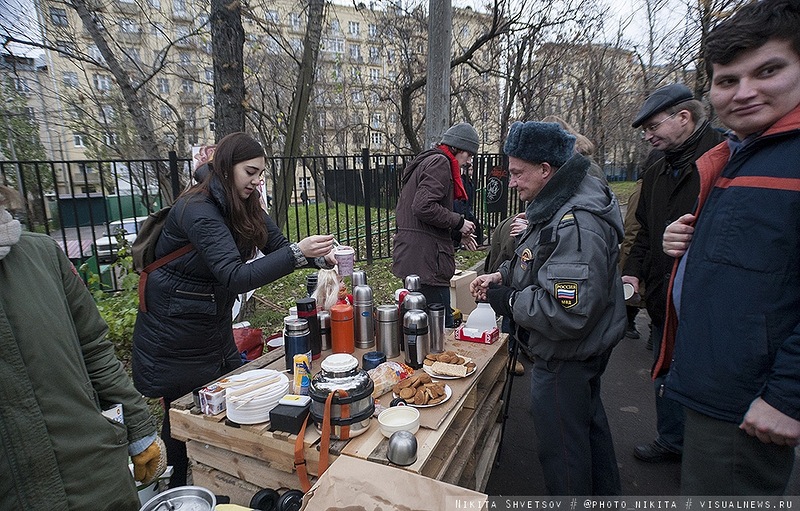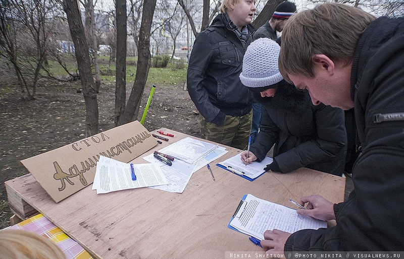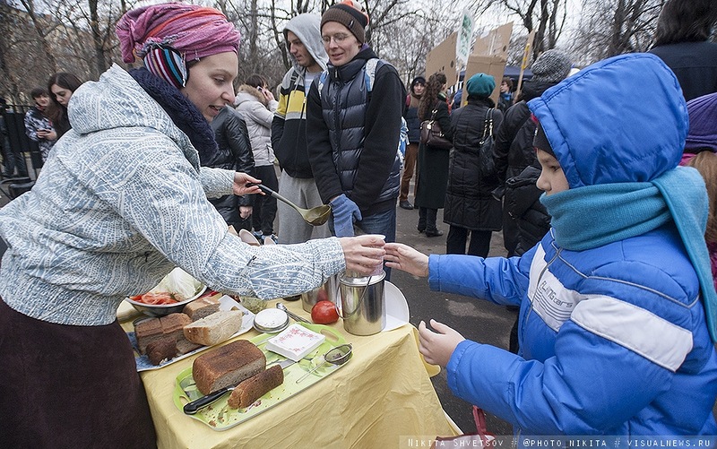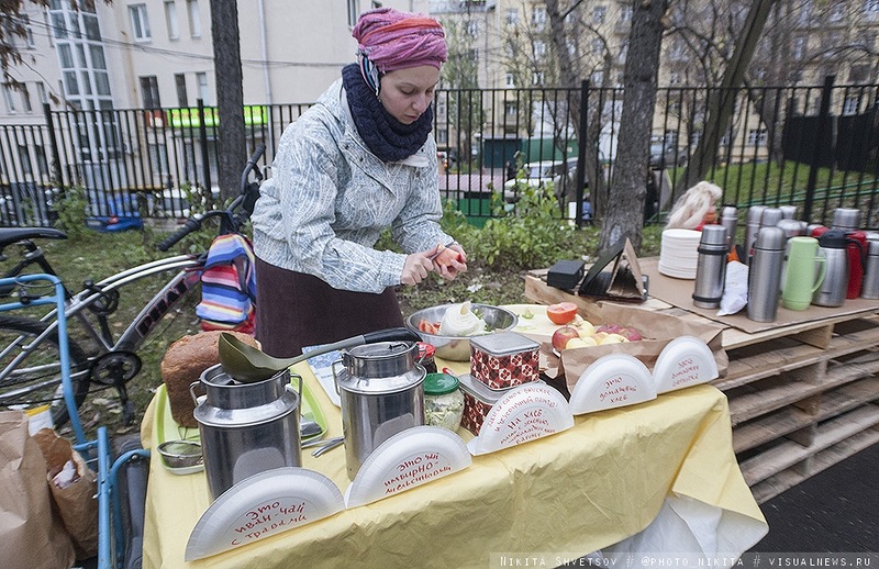 На митинге был организован горячий чай, вегетарианская кухня, пункт сбора вторсырья и Wi-Fi.