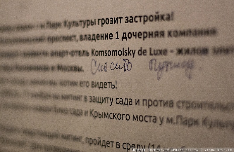 Также была подписана резолюция против строительства "апарт-отеля", которую отправят в мэрию, правительство и администрацию президента.
