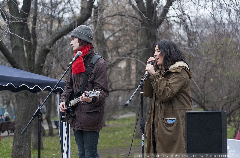 Митинг собрал около 150 человек и закончился "живым микрофоном", разогревающей зарядкой и выступлением замечательной группы Tender in May.