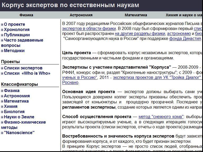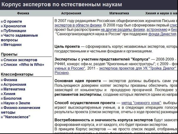 Александр Долгин. Как нам стать договоропригодными, или Практическое руководство по коллективным действиям (pdf, 671,6 КБ)Проект «Корпус экспертов» возник как попытка структуризации российского научного сообщества. Как сказал в докладе профессор М.В. Фейгельман, один из членов рабочей группы проекта, «нас осталось мало, и нам необходимо самоорганизоваться, чтобы иметь, по крайней мере, более-менее регулярную среду, в которой можно найти специалистов, действительно знающих толк в своих конкретных научных разделах». Полностью текст доклада «Островки науки в России», прочитанного М.В. Фейгельманом и Г.А. Цирлиной на экспертном семинаре РВК, а также материалы презентации можно найти здесь.