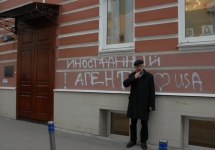 В ночь на среду на здании правозащитного общества "Мемориал" в Малом Каретном переулке появилась сделанная краской надпись "Иностранный агент. I ♥ USA", сообщается на сайте общества. Рядом с вывеской "Мемориала" были наклеены стикеры с текстом "Иностранный агент". "Акция неизвестных пришлась на 21 ноября не случайно. Именно сегодня вступает в силу так называемый закон "об иностранных агентах" - закон, который "Мемориал" считает антиправовым и аморальным, - говорится в сообщении. - "Мемориал" подтверждает свою первоначальную позицию: мы не намерены регистрироваться в качестве "иностранного агента". Появление же надписи на стенах здания "Мемориала" расцениваем как сознательное оскорбление памяти миллионов людей, погибших в ГУЛАГе".