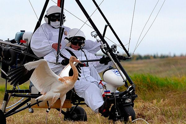 | Полет на дельтаплане. Справка. 6 сентября президент Владимир Путин принял участие в проекте российских орнитологов "Полет надежды" по спасению редкого вида журавля — стерхов, находящихся под угрозой исчезновения. Проект предполагает проводку выращенных в питомнике птенцов стерха с гнездовий в ЯНАО через Западную Сибирь и Казахстан на юг Узбекистана, где впервые в мире создается альтернативная зимовка этих птиц. До орнитологической станции "Кушеват" президент добрался на вертолете. Там он пересел за штурвал мотодельтаплана. Путин три раза поднялся в воздух — первый полет был ознакомительным, а два других — с птицами. После того как журавлей выпустили из вольера и они в первый раз взлетели, вслед за дельтапланом пристроился только один стерх. Позже в беседе с журналистами президент объяснил, что во время полета был сильный ветер, а у дельтаплана была слишком высокая скорость, поэтому птицы не справлялись. Второй полет с журавлями прошел успешно. За дельтапланом пристроились пять птиц, но спустя несколько кругов осталось только два журавля. По данным блогеров, перед полетом Путина популяция этого вида стерхов, которая и так насчитывает около 20 особей, уменьшилась на 10%. Один птенец погиб при неправильной транспортировке, другой попал в винт дельтаплана во время тренировочных взлетов. Однако ведущий научный сотрудник Окского заповедника, где были выведены журавлята, Татьяна Кашенцева опровергла эту информацию. |