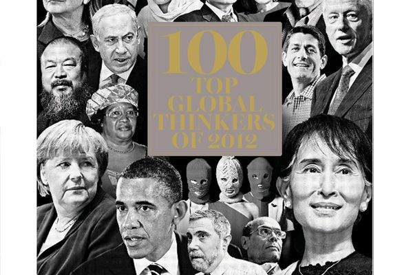 Журнал Foreign Policy составил список 100 крупнейших политических мыслителей года. Каждый год индекс публикует топ наиболее авторитетных персон в мире политики, экономики и искусства. Первый список был составлен американским политологическим журналом в 2005 году. В 2012 году наряду с американскими президентами, британскими писателями и журналистами, в шорт-лист по выбору редакции журнала вошли российские оппозиционеры Алексей Навальный и Евгения Чирикова, панк-группа Pussy Riot и главный программист страны Евгений Касперский.
