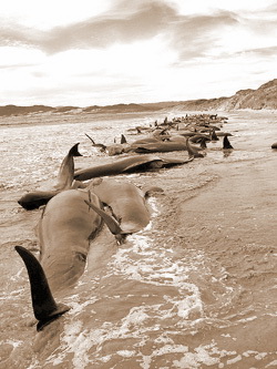 В действительности, версий самоубийства китов не три или четыре, а значительно больше. Самая популярная связана с тем, что у китов наблюдается кессонная болезнь [ 3]. Возможно, китов и дельфинов губит оглушительный гул субмарин. Они теряют слух, перестают ориентироваться в пространстве и выбрасываются на берег.