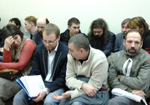 На прошлом заседании суд удовлетворил ходатайство о вызове в суд матери убитого нацбола Надежды Червочкиной, Виктории Кузнецовой, а также другороссов Сергея Фомченкова, Сергея Родинова и журналиста Алексея Сочнева. Впоследствии ответчики отказались по этическим соображениям вызывать в суд Червочкину, а несовершеннолетнюю Кузнецову суд отказался допрашивать в отсутствие родителей или опекуна.