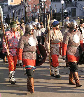 Фото: nne.ru Волгоградская инициатива – это воплощение очередной версии фольк-хистори с националистически-борцовским оттенком. Источник этих внеисторических мифологем – популярная и недостоверная литература на темы Древней Руси, в которой своеобразно интерпретируется житийная тема благословения Сергием Радонежским двух послушников Троицкой обители, Пересвета и Осляби. И тут сразу возникает путаница с «монашеством». Как известно, инок, уходя в монастырь, обязуется впредь не участвовать ни в каких земных делах, отказывается не только от семьи и имени, но и от земного отечества. Тот факт, что два бывших воеводы, а затем послушника (неизвестно, были ли они уже «стрижены» или, как говорят предания, Пересвет уже принял схиму) участвовали в Куликовской битве, свидетельствует, скорее, о том, что они оставили монастырь и перестали числиться в братии. Т. е. на момент битвы иноками быть никак не могли и иноческое облачение не носили.