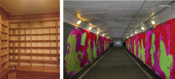 Фото из дневника искусствоведа Александры Обуховой - стеллажи на продажу, оставшие после того, как архив русского современного искусства перехал с Винзавода, где они были арендаторами, в "Гараж", где сразу были включены в инфраструктуру. Проект росписи перехода на Курской. Фото: ArtplayНе факт, что арт-кластеры на Курской захотят и смогут работать как инструмент преобразования городской среды, хотя в эту сторону собираются двигаться: московские власти хотят сделать арт-квартал: «территория 350 гектаров, границы ее продут по улицам Новорязанская, Ольховская, Бауманская, Воронцово Поле, а также по Яузскому бульвару и участку Курского направления железной дороги. Воплотить проект в жизнь, по расчетам чиновников, можно за десять лет и три миллиарда долларов». Пока будут воплощать, есть надежда, что Винзавод снова обретет смысл, вернувшись к первоначальной идее. Что такое кластер? По Майклу Портеру, идеологу этой стратегии экономического успеха – взаимодействие связанных общей деятельностью, взаимодополняющих друг друга и географически соседствующих компаний. Без галерей не оставалось ничего, кроме географической близости, потому что главная причина посетить именно это место, концентрация галерей, – была потеряна.