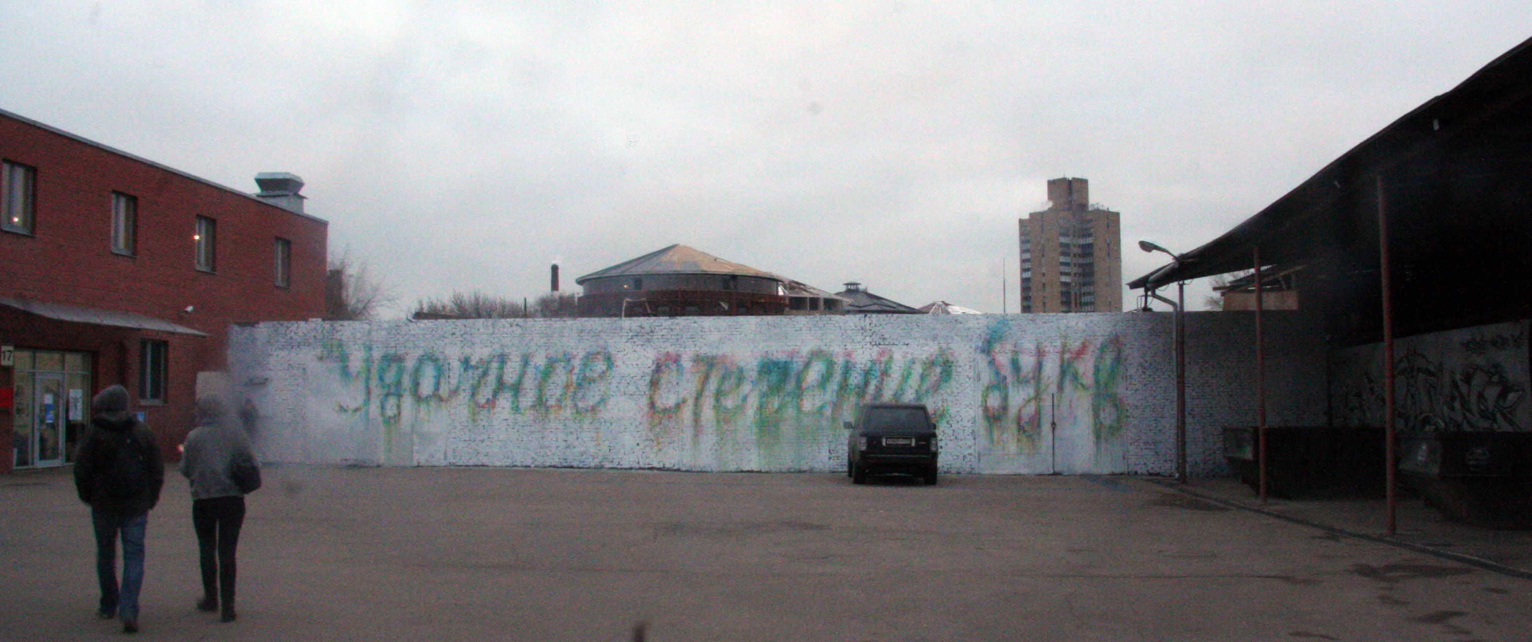 Работа Алексея Каллимы в рамках проекта "Стена" на Винзаводе обращается к принципам рекурсии, так же как в его мультиязычной работе "Десять букв" - что написано, то и значит.За тройкой первопроходцев ушли галерея Paperworks и галерея Ирины Меглинской – они как арендаторы пришли позднее, арендная ставка у них была намного выше, чем у старожилов, и они сочли дальнейшую работу с Винзводом нерентабельной. Осталась галерея «Проун», но ее деятельность – скорее музейная и исследовательская, у них нет задачи держать руку на пульсе современного искусства, искать новые имена, продавать и популяризировать наше искусство на Западе. Никуда не ушла и галерея «Риджина», владелец которой, Владимир Овчаренко, не раз в интервью высказался в таком плане, что у него все в порядке, значит, коллеги просто не умеют эффективно работать. Пожалуй, не стоит всех судить по коммерческому успеху, потому что не для всех он является целью, не было бы в искусстве альтруистов, энтузиастов и рисковых экспериментаторов, искусство бы не развивалось. К сожалению, проект его сына, Михаила Овчаренко, галерея «Арт-берлога», показывавшая интересные групповые и персональные проекты молодых художников, с интереснейшим «вертикальным пространством», походом на лестницу из трех гигантских ступеней – закрылся еще до массового исхода, может быть, коммерчески себя не оправдал.