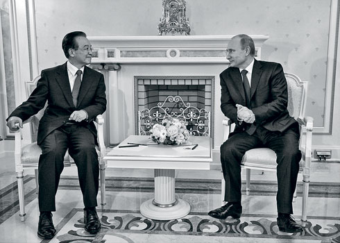 Президент России Владимир Путин на встрече с премьером Госсовета КНР Вэнь Цзабао. Лидеры обсудили актуальные вопросы российско-китайских отношений. 6 декабря 2012 г.