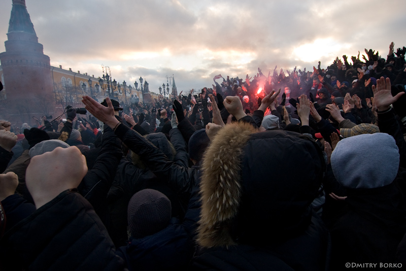 Ровно два года назад, 11 декабря 2010 года, на Манежной происходило то, что позже было названо "массовыми беспорядками". Некоторые формальные признаки налицо. Были пострадавшие гражданские, елочку раздербанили, в ОМОН кидались разными предметами (елочными шарами, снегом, пивными банками), шли на милицию с металлическими заграждениями и жгли файеры. Один из участников стрелял в воздух из травмата - "применение оружия". Правда, обильные витрины соседних бутиков никто не трогал и ничто не загорелось. А так - да. В конце концов, не точное соответствие формальным признакам закона беспокоит граждан, а собственная безопасность.