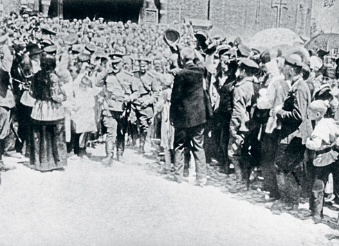 Антон Деникин (в центре) во главе Белой армии в освобожденном Царицыне. 1919 г.
