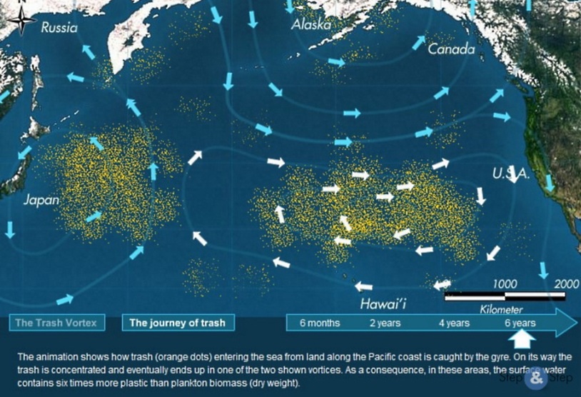 Водоворот Северо-Тихоокеанской системы течений сформировал сразу два мусорных участкаО появлении в океанах мусорных островов предостерегали давно, но впервые об их существовании заговорили после серии публикаций капитана Калифорнийского флота и океанолога Чарльза Мура, который обнаружил огромное скопление пластикового мусора на поверхности океана, проплывая Северо-Тихоокеанскую систему течений. Водоворот этой системы собирает пластиковый мусор как с берегов Азии, так и Северной Америки, и отходы, подхваченные течениями, постепенно концентрируются в штилевой зоне. Течения водоворота сформировали сразу два мусорных участка, один из которых, площадью вдвое превышающий штат Техас, находится между Гавайскими островами и Калифорнией, а второй - к востоку от Японии. Но не стоит думать, что виноваты лишь одни японцы или американцы: великий тихоокеанский мусор собирает практически все человечество.