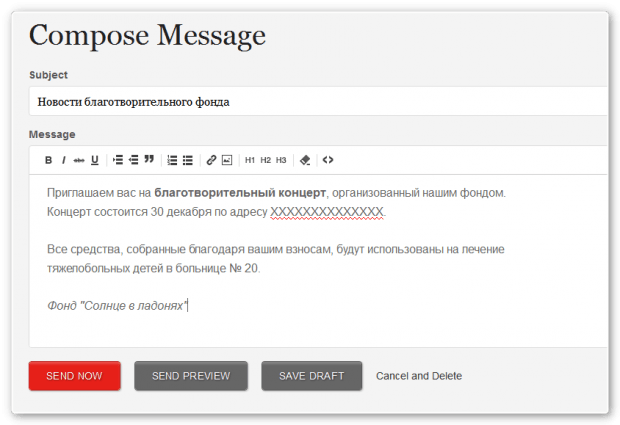 Создание своей рассылки может быть необходимо любому проекту, имеющему свое представительство в Интернете и желающему периодически информировать заинтересованных пользователей о важных событиях. Таким образом, НКО может приглашать на свои грядущие мероприятия, благотворительный фонд приглашать к участию волонтеров и собирать средства или, например, районная библиотека сообщать о новых поступлениях.