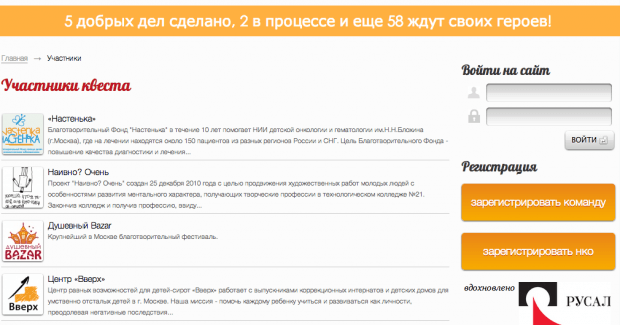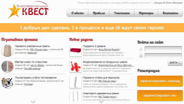 Еще один момент, который выделяет «Благотворительный квест» из ряда похожих инициатив, – это сайт, созданный на базе открытого кода. Это значит, что похожие площадки могут появляться по всей России.