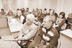 Пришедшие в небольшой старый зал городской Думы 5 декабря немногочисленные сохранившие силы к сопротивлению жильцы домов 34 и 40 обнаружили, что зал… практически полностью занят.