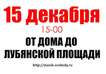 В четверг заявители "Марша свободы" получили официальный отказ мэрии Москвы в согласовании акции. В среду заявителям и мэрии Москвы не удалось договориться о маршруте "Марша свободы". Мэрия предложила организаторам марша маршрут от Трубной площади до Кропоткинской набережной. "У Мэрии нет других вариантов по маршруту Марша. Это нас не устраивает. Значит, остается вариант - Лубянка в 15:00. Каждый идет сам", - написал в своем блоге координатор Левого фронта Удальцов. Ранее Алексей Навальный, Сергей Пархоменко, Илья Яшин, другие члены КСО и протестные активисты объявили о намерении выйти на Лубянку 15 декабря несмотря на отказ в согласовании. Начало акции в 15 часов.