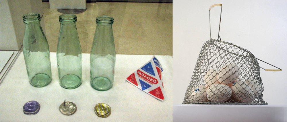 Упаковка молочной продукции, 1960-90-е. Собрание Московского музея дизайна. Шведская технология производства треугольных пакетов молока компании Tetra Pak, ныне принадлежащей швейцарскому концерну, получила в СССР свое каноническое графическое оформление. В Советском союзе эта упаковка оставалась популярной на протяжении многих лет, во многом благодаря тому, что ее было удобно переносить в авоське. В то время как в Европе уже использовали для покупок пластиковые пакеты, которые рвались от острых углов пирамидок. Складная металлическая сетка для яиц, 1960-70-е. Собрание Московского музея дизайна.- А кроме экологии, что было ценного и поучительного для наших дней?