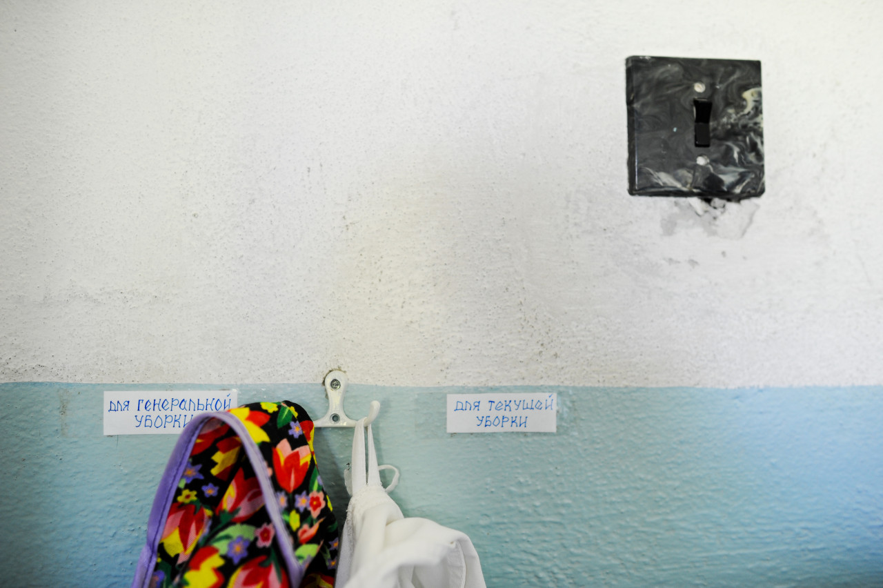 Ольга Егорова стряхивает пепел с сигареты в старый колпак автоклава. Ольге 43 года, в Итомлинской больнице она работает пять лет. Сама живет в деревне Шолохово, до работы добирается на автобусе со школьниками. В Шолохове когда-то был свой медпункт, но его закрыли.