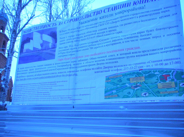 Официальные СМИ рапортовали :"Скоро юные экологи Екатеринбурга и области будут выращивать растения и проводить опыты в новом центре. Его построят в Юго-Западном районе. Только вот горожане такой стройке не рады. Опасаются, что еще один уголок отдыха исчезнет.