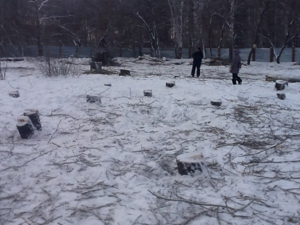 Парк имени 50-летия ВЛКСМ под застройку экоцентра выделили городские власти. Деревья, что вырубят, пометили красной краской, их 180. "Будет посажено больше деревьев, чем мы вырубим, — уверяет главный инженер фирмы-подрядчика Александр Некрасов. — Это необходимость, надо вырубить деревья, чтоб посадить здание на это место".