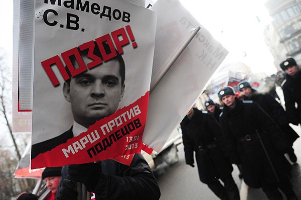 На следующий день, 29 декабря, оппозиция подала заявку на проведение "Марша против подлецов" численностью до 20 тысяч человек в мэрию Москвы. После новогодних праздников акция была согласована. В воскресенье, 13 января, от пересечения Страстного бульвара с улицей Большая Дмитровка до проспекта академика Сахарова прошагали участники “Марша против подлецов”. По данным МВД на шествие пришли не более 9,5 тысяч человек, по информации Удальцова - 50 тысяч человек, блогер Дмитрий Терновский подсчитал у входа на рамках-металлоискателях около 25 тысяч участников акции.