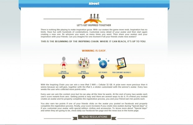Посещение сайта доставит удовольствие даже хотя бы рассматриванием аватаров других пользователей, среди которых, кстати, немало наших соотечественников. Тут можно встретить и Элвиса в образе викинга, человека-печеньку или гламурного лесного эльфа. Каждые две недели определяется победитель, набравший самое большое количество очков. Ему даруется царский подарок – новенький Ipad 3 c аппликацией созданного им аватара.