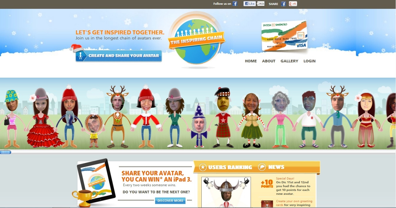 «The Inspiring chain» – это массовый Интернет-конкурс, участники которого создают свои собственные аватары и выстраиваются в длинную цепочку в надежде завоевать желанный приз.